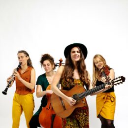 Entre harmonies vocales, cordes et clarinette, vous découvrirez ses compositions qui sont un mélange de couleurs, d’influences et de rythmes. Elles sont le résultat de nombreuses années de vie nomade et de recherche musicale. Sa musique est le fruit de son grand interêt pour l’exploration de divers répertoires et genres, tels que ceux du sud, du centre et du nord du continent américain, ainsi que le jazz et la musique populaire méditerranéenne.